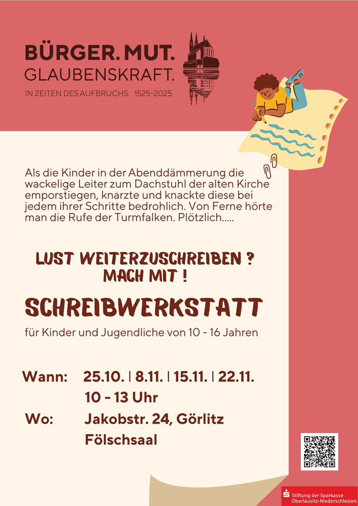 Von Mai bis September waren Kinder und Jugendliche im Alter von 10–15 Jahren an fünf Sonnabendvormittagen zu Gast im Theater-Café des Gerhart-Hauptmann-Theaters in Görlitz. Hier wurde in Schreibworkshops das Handwerkszeug des Schreibens vermittelt, wobei sie von Dr. Carsten Schmidt unterstützt wurden, der als Lehrer an der Freien Ev. Oberschule in Görlitz selbst eine AG zu dem Thema leitet.