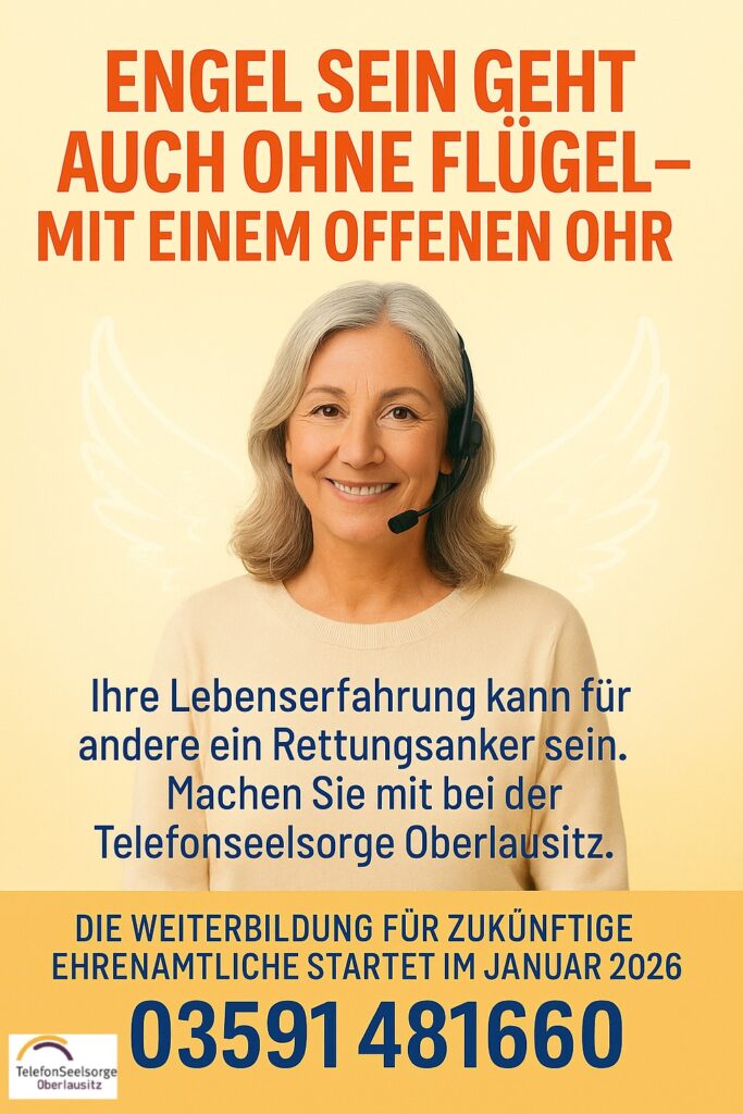 Im Januar startet der neue Ausbildungskurs für ehrenamtliche Mitarbeitende der TelefonSeelsorge Oberlausitz. Für diese wertvolle Aufgabe suchen wir engagierte Menschen, die Freude daran haben, anderen zuzuhören, sie zu begleiten und ihnen in schwierigen Lebenssituationen unterstützend zur Seite zu stehen.