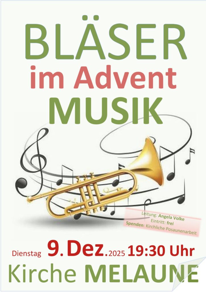 Veröffentlicht am 2. Dezember 20259. Dezember 2025 von PyzikBläser im Advent – Musik am 9. Dezember um 19:30 Uhr in der Evangelischen Kirche Melaune teilen drucken