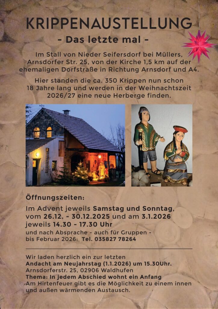 Ab 2007 wohnen Müllers in Nieder Seifersdorf. Seitdem kann man in einer ehemaligen Schmiede Krippen aus verschiedenen Materialien und…