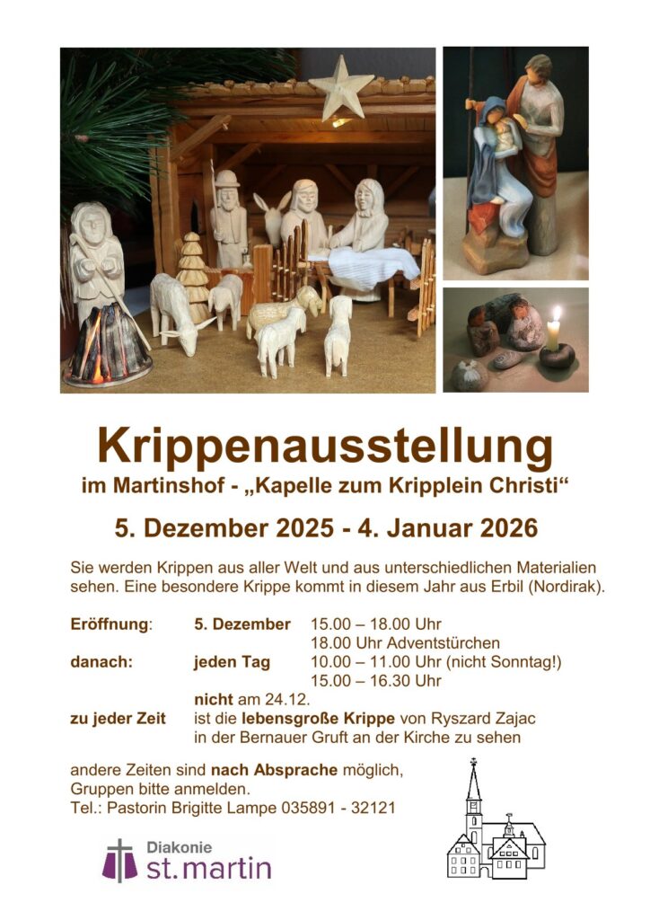 Unter dem Titel „Ich steh an deiner Krippen hier“ lädt die Evangelische Versöhnungskirchengemeinde Görlitz in der Adventszeit zu einer besonderen Ausstellung ein. Zu sehen sind Krippen aus aller Welt – Teil der beeindruckenden Sammlung von Frau Kempgen und ihres verstorbenen Ehemannes, die über viele Jahre hinweg mit großer Leidenschaft zusammengetragen wurde. Die Sammlung…