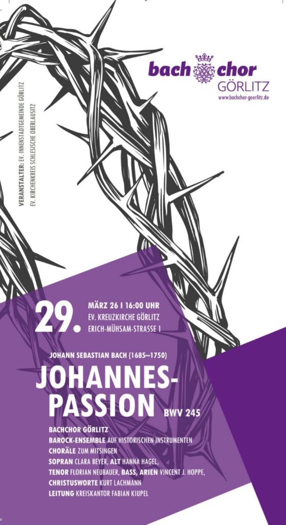 Johannespassion am 29. März 2026 um 16:00 Uhr in der Evangelischen Kreuzkirche Görlitz