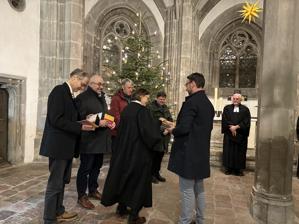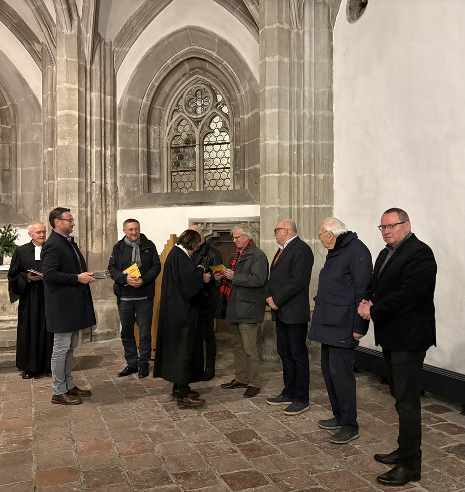 Mit der Kantorei… Verabschiedung von Frau OKR’in i.R. Margrit Kempgen und ihres Teams in der Geschäftsstelle Evangelisches Schlesien und Begrüßung des neuen Leiters Herrn Dr. Stephan Aderhold am 16. Januar 2026 in der Krypta der Evangelischen Peterskirche in Görlitz